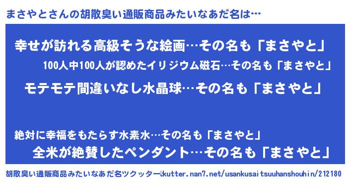 | 意味不明あだ名 | 『ペロリンまさやと』『永久保存まさやと』 |