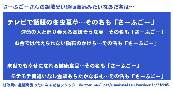 | 女子向けラノベタイトル風あだ名 | 『さーふごー恋絵巻』『闇のさーふごー』 |