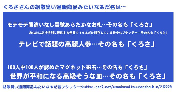 | 意味不明あだ名 | 『自称くろさ』『ペロリンくろさ』 |