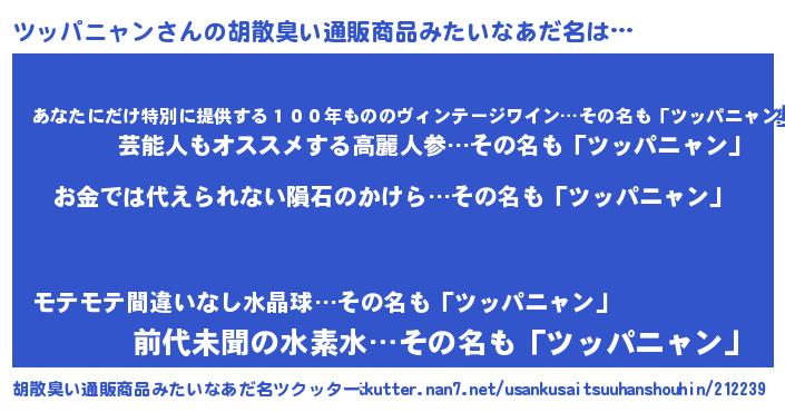 | ヘコむあだ名 | 『ツッパニャン(震え声)』『ツッにー』 |