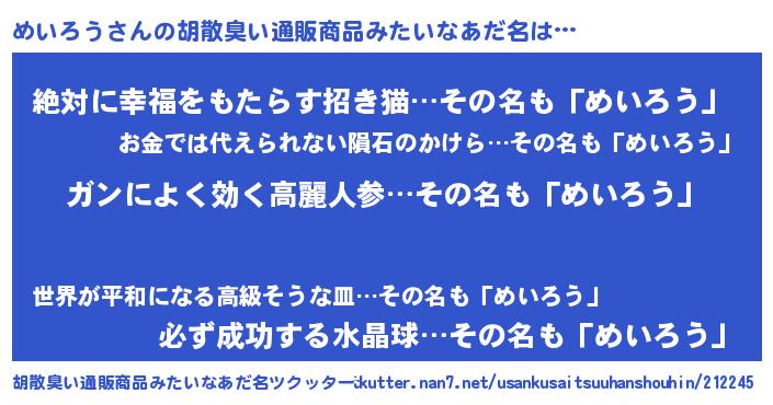 | 意味不明あだ名 | 『自称めいろう』『永久保存めいろう』 |