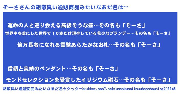 | 意味不明あだ名 | 『ペロリンそーさ』『そーさフォーエバー』 |