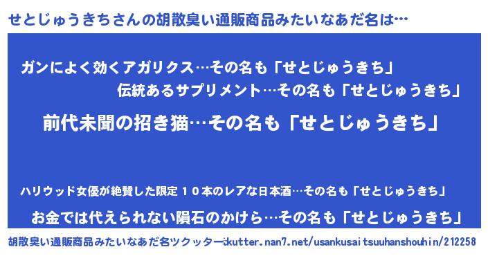 | 意味不明あだ名 | 『永久保存せとじゅうきち』 |