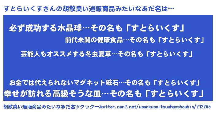 | 肩書あだ名 | 『すとらいくす総統』『すとらいくす社長』 |