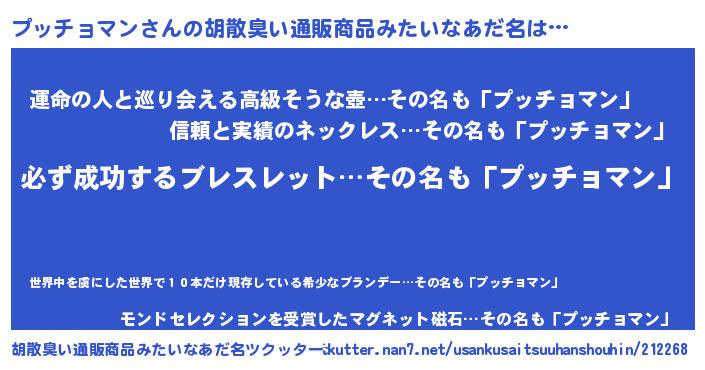 プッチョマンさんの胡散臭い通販商品みたいなあだ名をツクッター!