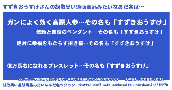 | ヒーロー風カッコイイあだ名 | 『ネオスズキオウスケ』『仮面スズダー』 |