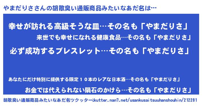 | ヘコむあだ名 | 『やまにー』『つくし』『やま太郎』 |
