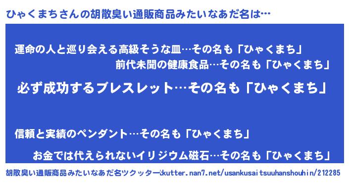 | 男性向けラノベタイトル風あだ名 | 『ひゃくまちの憂鬱』 |