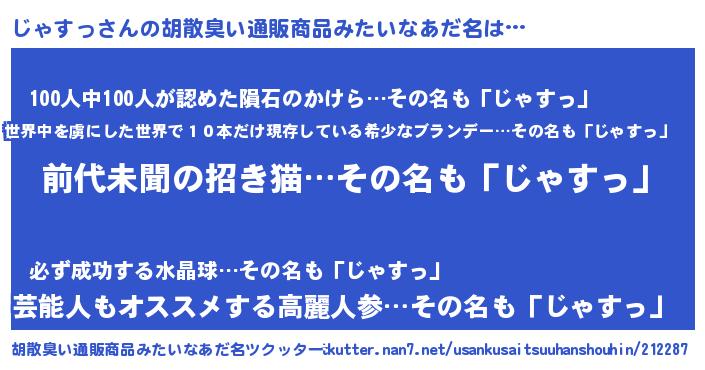 | 意味不明あだ名 | 『永久保存じゃすっ』『自称じゃすっ』 |