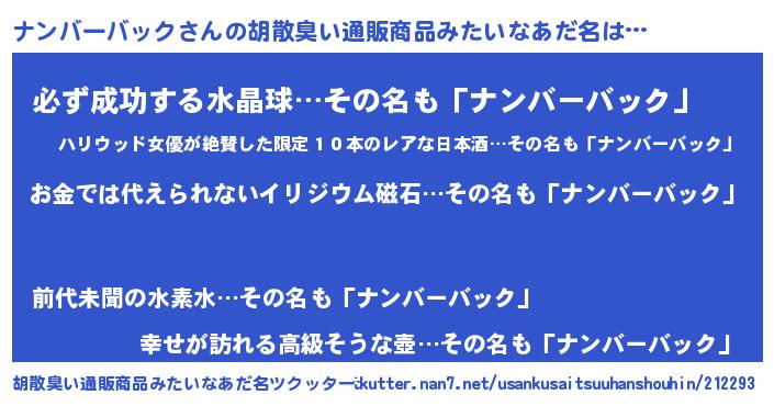 | 男性向けラノベタイトル風あだ名 | 『おまえをオタクにしてやるから、俺をナンバーバックにしてくれ! 』 |