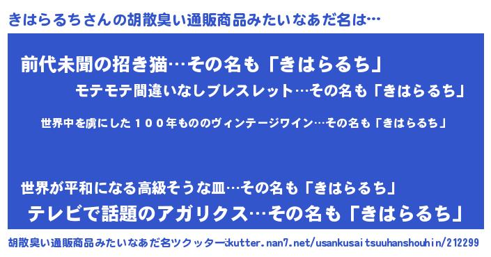 | ヘコむあだ名 | 『きはらるち(小並感)』『きはふぇ~』 |