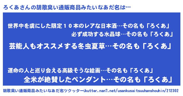 | 女子向けラノベタイトル風あだ名 | 『ろくあの玉の輿計画!』『闇のろくあ』 |