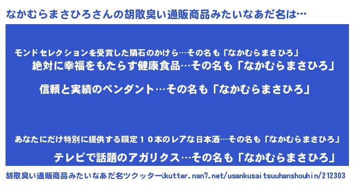 | 意味不明あだ名 | 『とにかく怪しいなかむらまさひろ』 |