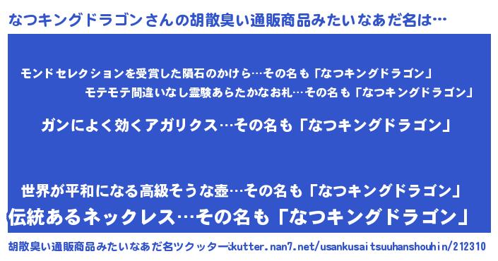 | 意味不明あだ名 | 『自称なつキングドラゴン』 |