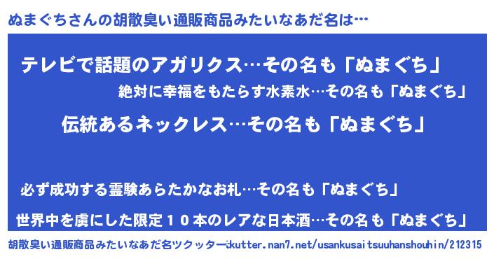 | ヘコむあだ名 | 『ぬまっぺ』『ぬまぐち(笑)』『牛乳』 |