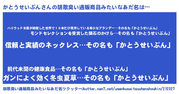 | 女子向けラノベタイトル風あだ名 | 『かとうせいぶんは平凡を望む』 |