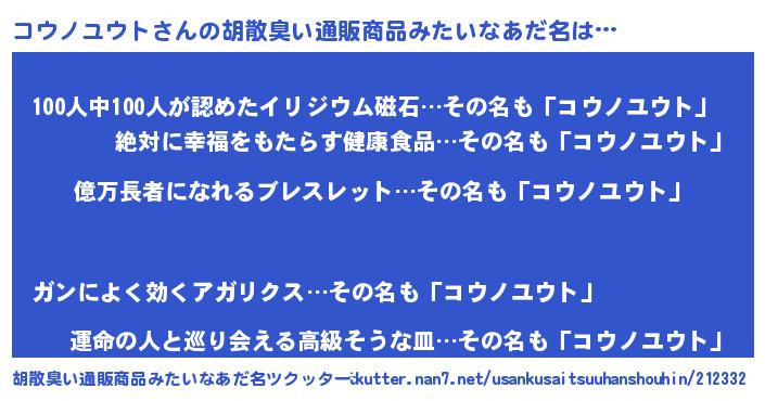 | 肩書あだ名 | 『コウノユウト社長』『コウノユウト先生』 |