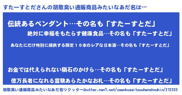 すたーすとださんの胡散臭い通販商品みたいなあだ名をツクッター!