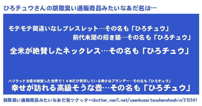| 意味不明あだ名 | 『とにかく怪しいひろチュウ』 |