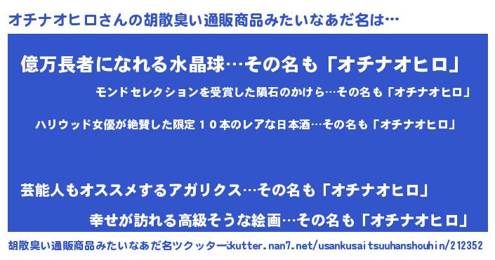 | 欧米人風あだ名 | 『ダレノガレオチナオヒロ』 |