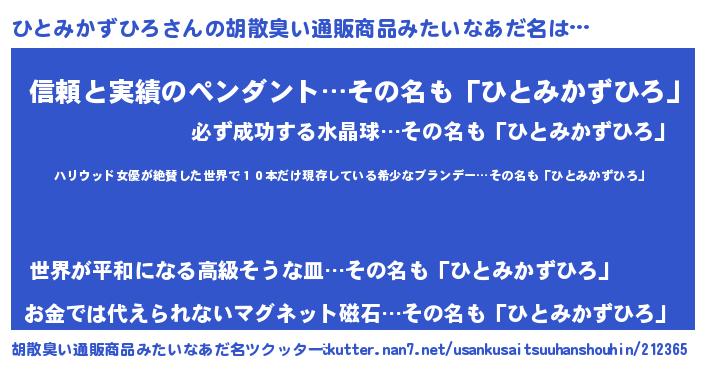 | 伝説のあだ名 | 『孤高の遊び人ひとみかずひろ』 |