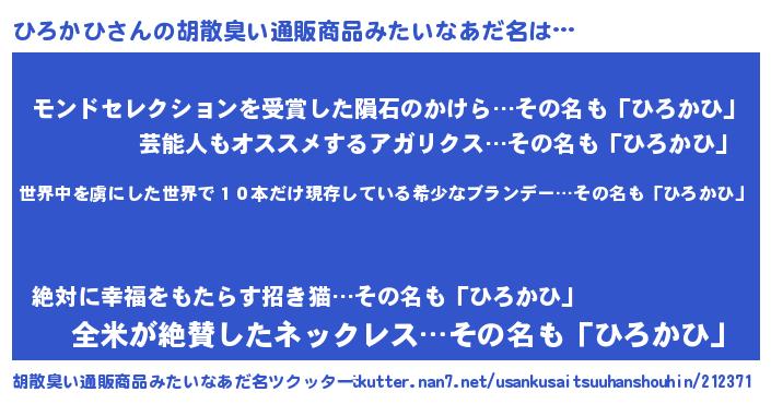 | ヒーロー風カッコイイあだ名 | 『仮面ヒロダー』『慈愛の使者ひろかひ』 |