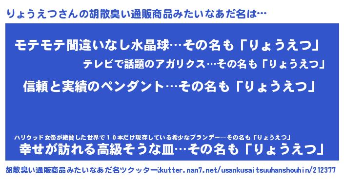 | 意味不明あだ名 | 『とにかく怪しいりょうえつ』 |