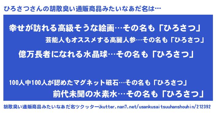 ひろさつさんの胡散臭い通販商品みたいなあだ名をツクッター!