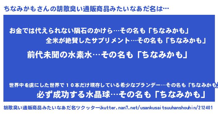 | ヒーロー風カッコイイあだ名 | 『ネオチナミカモ』『愛の使者ちなみかも』 |