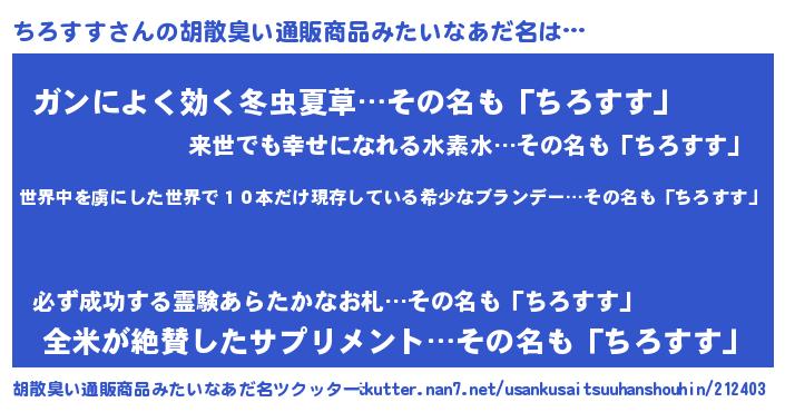 | ヘコむあだ名 | 『ちろぷりん』『ちろすす(震え声)』 |