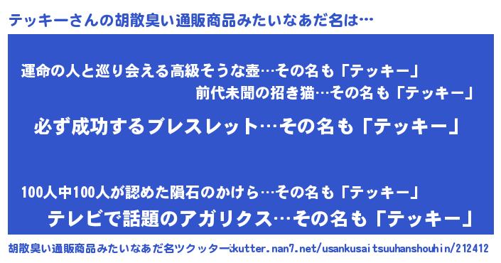 | 男性向けラノベタイトル風あだ名 | 『テッキーの憂鬱』『緋弾のテッキー』 |