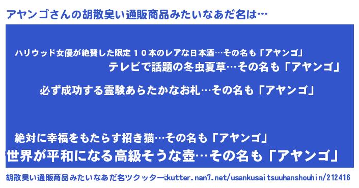 | 意味不明あだ名 | 『ペロリンアヤンゴ』『自称アヤンゴ』 |