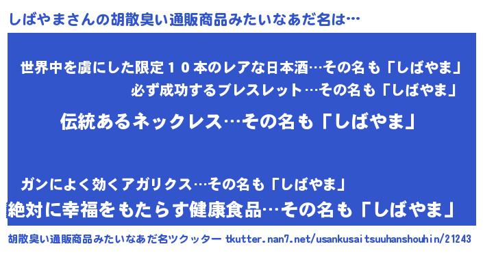 | 意味不明あだ名 | 『とにかく怪しいしばやま』 |