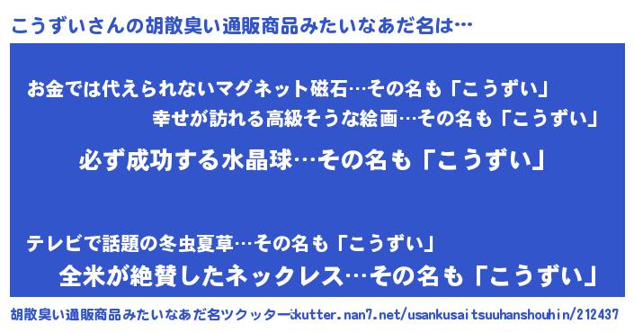 | ヘコむあだ名 | 『こうにゅー』『こうを』『豆乳』 |