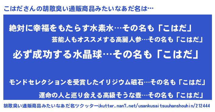 こはださんの胡散臭い通販商品みたいなあだ名をツクッター!