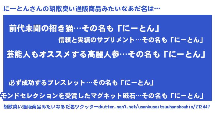 | 意味不明あだ名 | 『自称にーとん』『永久保存にーとん』 |