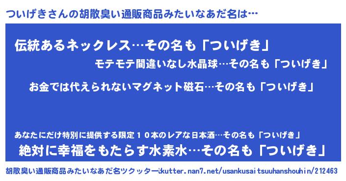 | ヘコむあだ名 | 『つい太郎』『ついげき(爆)』 |