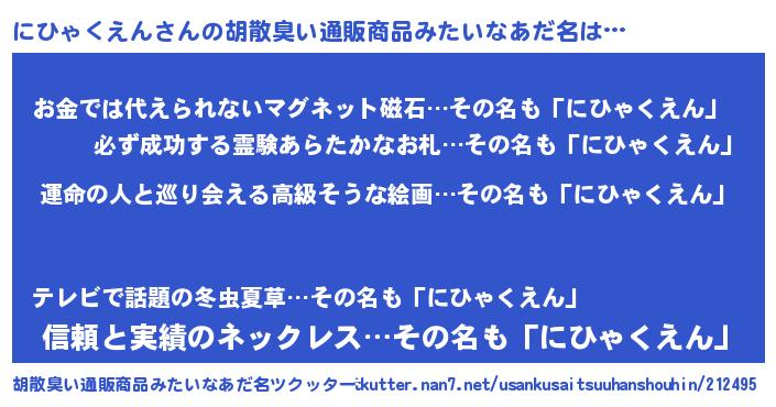 | 意味不明あだ名 | 『にひゃくえんフォーエバー』 |