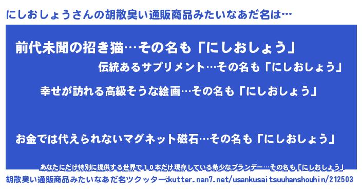 | 意味不明あだ名 | 『にしおしょうフォーエバー』 |