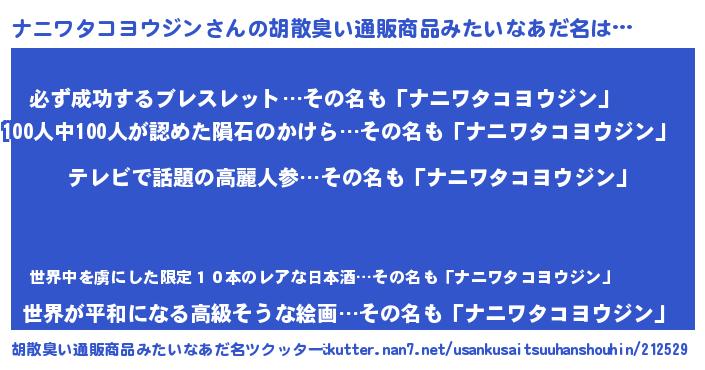 ナニワタコヨウジンさんの胡散臭い通販商品みたいなあだ名をツクッター!