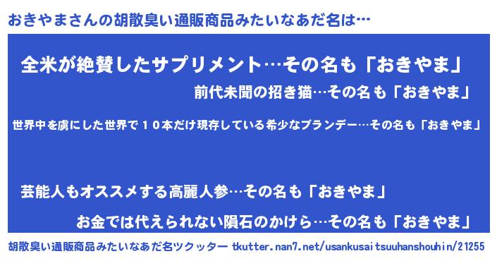 | 意味不明あだ名 | 『住所不定無職おきやま(91歳)』 |