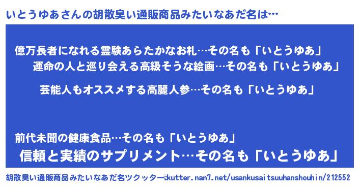 | 女子向けラノベタイトル風あだ名 | 『いとうゆあストレイドッグス』 |