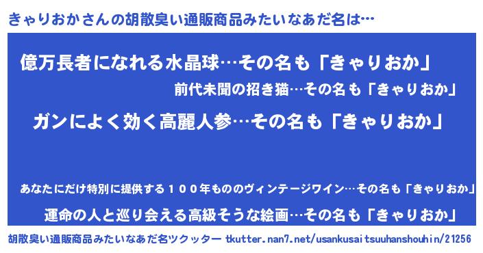 | 意味不明あだ名 | 『自称きゃりおか』『ペロリンきゃりおか』 |