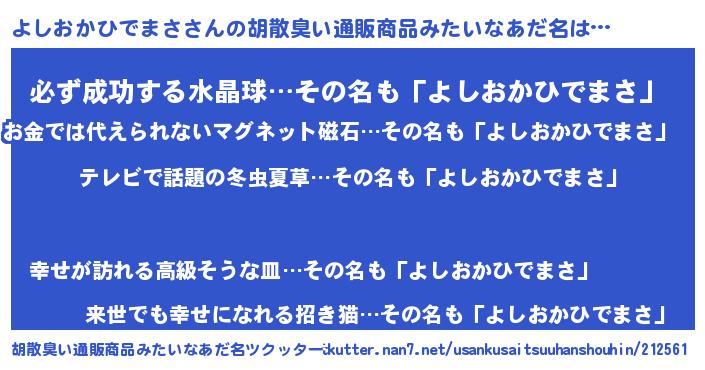 | ヘコむあだ名 | 『よしもー』『よしおかひでまさ(小並感)』 |