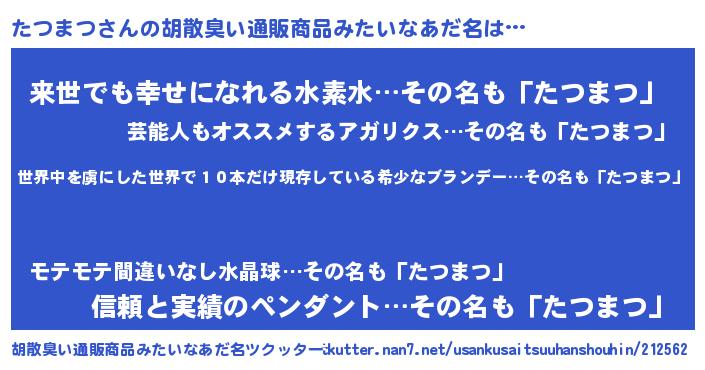 | 意味不明あだ名 | 『住所不定無職たつまつ(71歳)』 |
