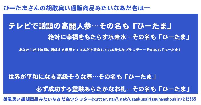 | 男性向けラノベタイトル風あだ名 | 『この素晴らしい世界にひーたまを!』 |