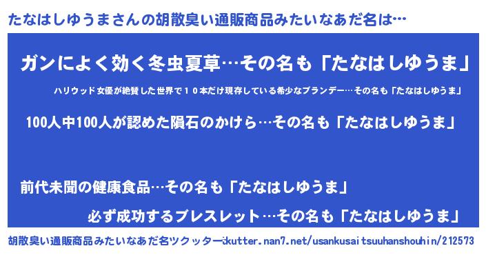 | ヘコむあだ名 | 『たなもー』『たなはしゆうま(笑)』 |
