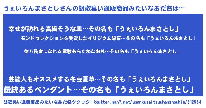 | 恥ずかしいあだ名 | 『プリティーうぇいろんまさとし』 |