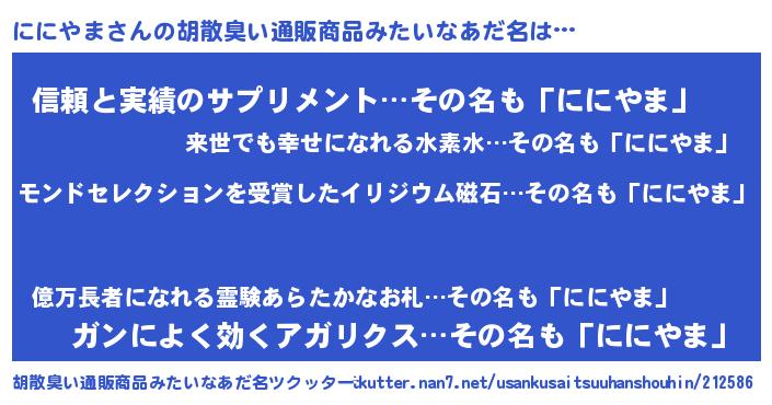 | 男性向けラノベタイトル風あだ名 | 『うちのににやまが世界を掌握している!』 |