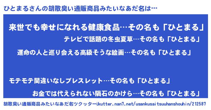 | 意味不明あだ名 | 『ひとまるフォーエバー』『自称ひとまる』 |